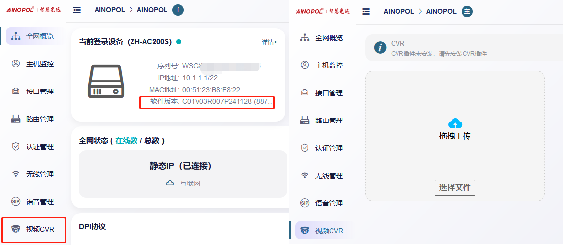演示X86版本(AC200/AC500/AC1000等)为:C01V03R007P241128