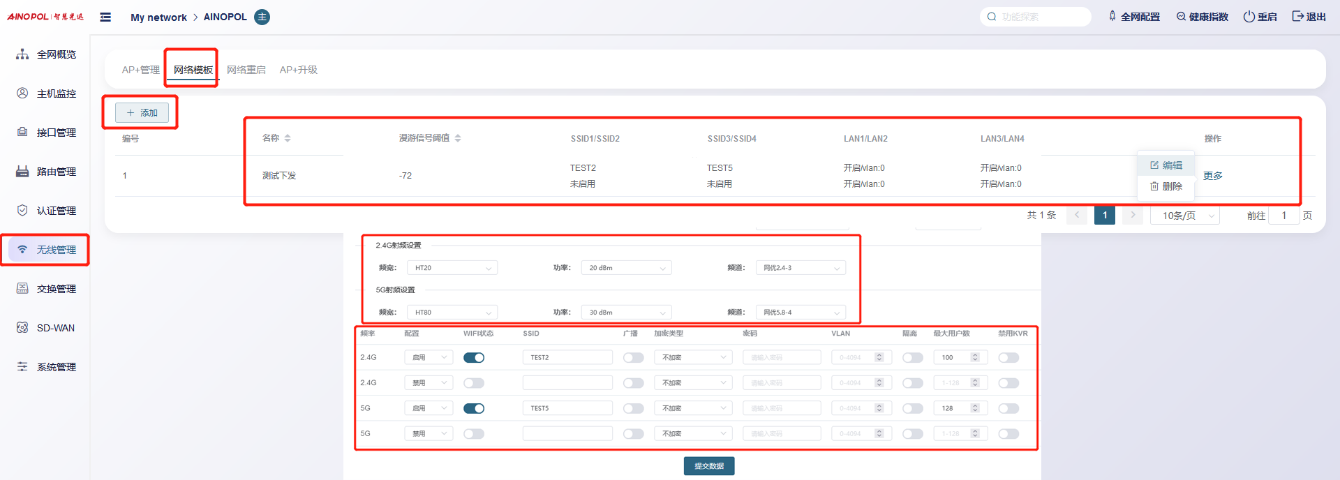 2:劫持成功后,再去 无线管理,检测AP上线情况( 做模板下发控制WIFI与 SSID )