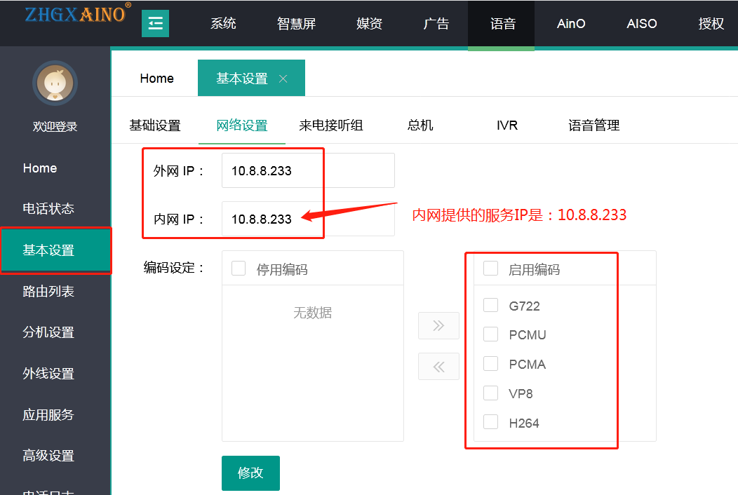 - 1:检测后台SIP电话提供服务器地址(默认是10.8.8.200,此例子为:10.8.8.233)