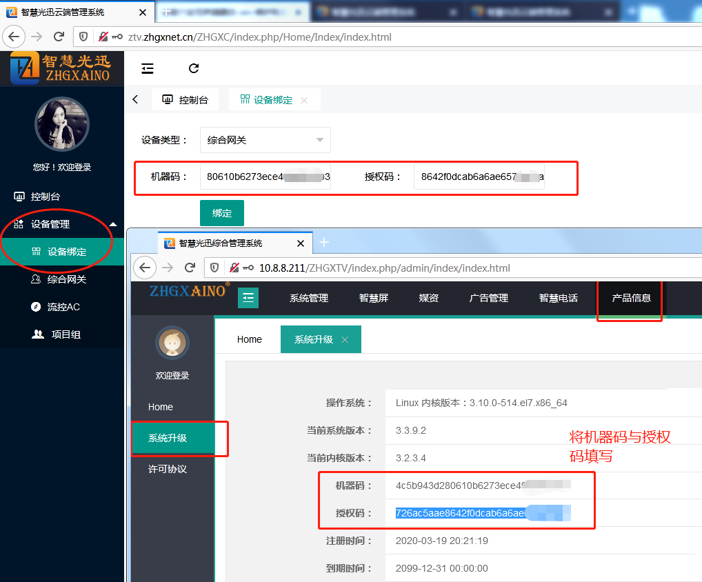 3:登陆进入绑定已有设备,(查询机器码、授权码)(注意删除空格,不要加到空格复制的时候)