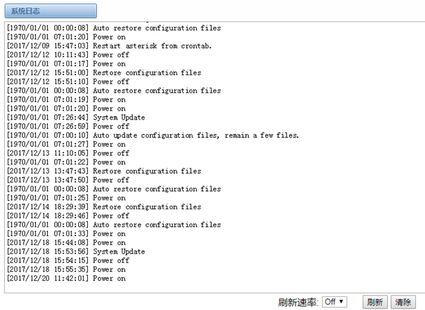 在日志设置界面,打开相应的日志选项,可在对应的界面中查看不同的日志。以系统日志为例。