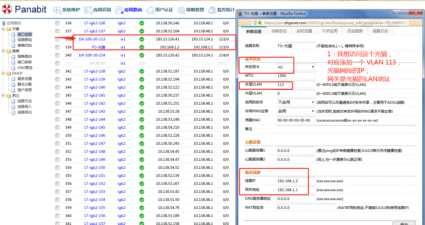 3-1:添加PA对应想访问的光猫的地址,对应VLAN (如果想换访问光猫,更改VLAN与对应网卡即可)