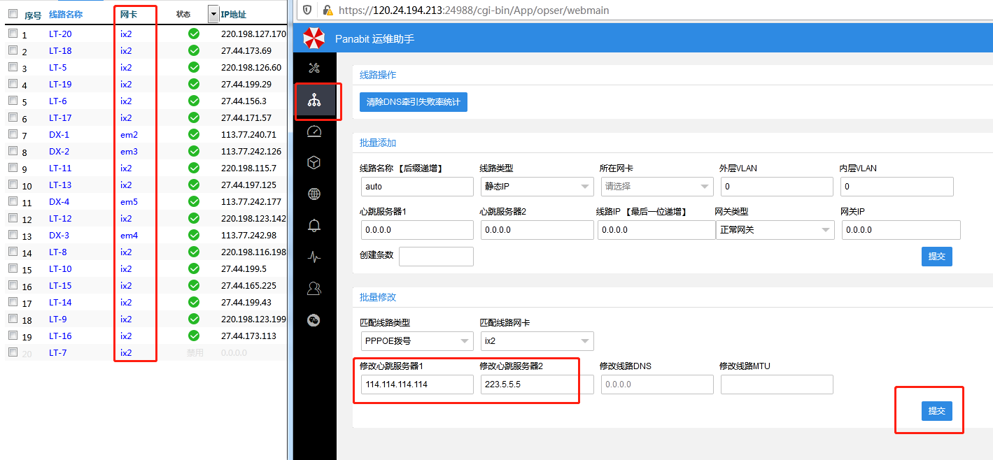 1:下载运维助手,并打开2:找到线路操作,批量针对外线指定需求的线路添加心跳IP,114.114.114.114, 223.5.5.5,MTU可以考虑修改14803:通过加了心跳后,发现很多外线资源有故障,将其禁用!!《PS:可以排序》4:搜索down的线路,将其禁用!!1:下载运维助手,并打开2:找到线路操作,批量针对外线指定需求的线路添加心跳IP,114.114.114.114, 223.5.5.5,MTU可以考虑修改14803:通过加了心跳后,发现很多外线资源有故障,将其禁用!!《PS:可以排序》4:搜索down的线路,将其禁用!!文档更新时间: 2020-12-02 14:54 作者:admin
