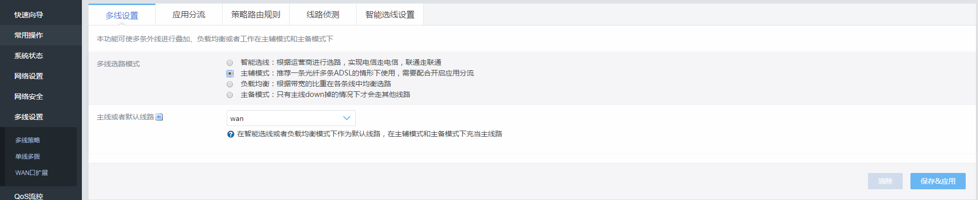 步骤一、选择wan为主线